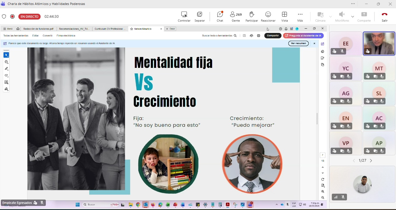 En el marco de esta articulación, el 18 de marzo se desarrolló una charla virtual dirigida a graduados de diferentes instituciones de educación superior, en la cual participaron más de 300 graduados conectados simultáneamente. Este espacio permitió fortalecer la proyección profesional de los egresados y evidenciar el trabajo conjunto entre las instituciones que integran la red, consolidando acciones de impacto regional.