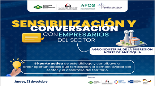 ENCUENTRO CON EMPRESARIOS DEL NORTE DE ANTIOQUIA EN EL EVENTO EMPRESARIAL DEL NORTEEl pasado 23 de octubre se llevó a cabo la reunión con empresarios del Norte de Antioquia en el marco del Evento Empresarial del Norte, desarrollado en alianza con la Cámara de Comercio, la Cámara Colombo Alemana, la empresa AFOS y la Fundación Universitaria Católica del Norte, a través de las áreas de Extensión y Centro Laborem. Este espacio permitió fortalecer los vínculos entre la academia, el sector empresarial y las organizaciones aliadas, promoviendo el intercambio de experiencias, la identificación de oportunidades de colaboración y el impulso al desarrollo económico y social de la región. |
