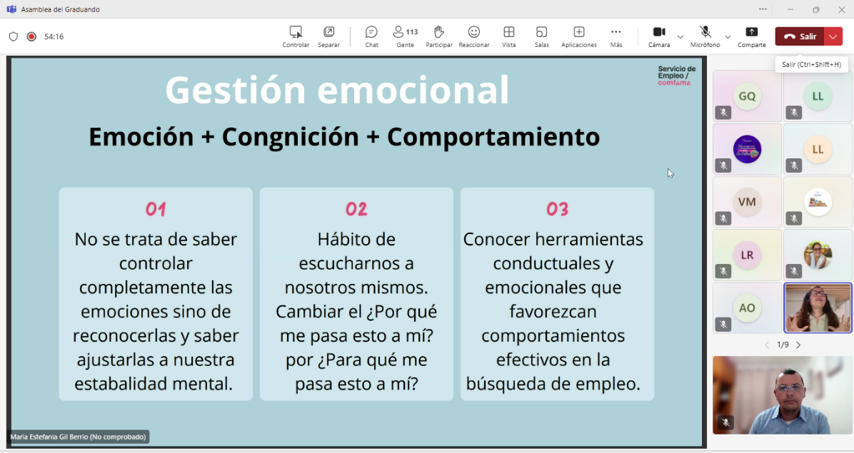 Asamblea del Graduado | Como parte de los procesos que se ejecutan desde Pastoral y Bienestar, a través del Centro Virtual del Graduado, el pasado 18 de marzo de 2025, se realizó la Asamblea del Graduando, con los estudiantes que se proclamaron como profesionales el viernes 21 de marzo. El objetivo de este encuentro fue generar un espacio de formación y de diálogo, en el cual se sigan fortaleciendo vínculos de Bienestar entre los graduandos con la institución; además, se estableció un diálogo con la academia, sobre experiencias vividas a lo largo del proceso formativo y un espacio de reconocimientos a los mejores trabajos de grados por facultad. También, y no menos importante, se compartió una mentoría sobre: “habilidades sociolaborales para ser exitoso”, con la Caja de Compensación COMFAMA, por medio de la cual, se realiza toda la ruta de empleabilidad de nuestros graduados con Sentido Humano. |