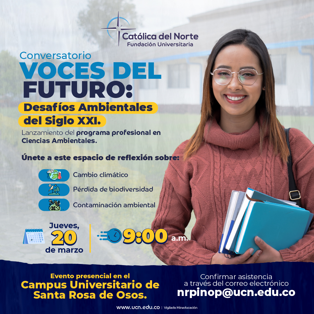 LANZAMIENTO DEL PROGRAMA CIENCIAS AMBIENTALESAproposito del lanzamiento del programa, se realizó en el campus de Santa Rosa de Osos el evento: » Voces del Futuro: Conversatorio sobre los Desafíos Ambientales del Siglo XXI», el cual estuvo orientado por los docentes Diana Agudelo, Doctora en Ingeniería Ambiental (Área Recursos Hídricos) y Magíster en Ingeniería (Área Ambiental-Énfasis calidad de agua) de la Universidad de Antioquia e Ingeniera Biológica de la Universidad Nacional de Colombia Sede Medellín y el docente Sergio Esteban Herazo, Magíster en Ingeniería Ambiental e Ingeniero Ambiental Universidad de Antioquia. Fue un espacio de diálogo y reflexión, donde se conversó sobra las amenazas y oportunidades frente al cambio climático, la pérdida de biodiversidad y la contaminación ambiental. Adicionalmente, se escucharon opiniones que ayudan a la construcción de soluciones sostenibles para nuestro planeta! |
