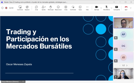MASTERCLASS SOBRE TRADING: ESTRATEGIAS, LECTURA DEL MERCADO Y OPORTUNIDADES GLOBALESEl pasado 29 de octubre realizamos la MasterClass “El trading como profesión: el poder de los mercados globales, estrategias del trader, lectura inteligente del mercado y futuro del trading”. Este espacio formativo permitió a los participantes comprender las dinámicas fundamentales del trading, conocer herramientas prácticas para el análisis del mercado y explorar las tendencias que están transformando esta profesión a nivel global. |