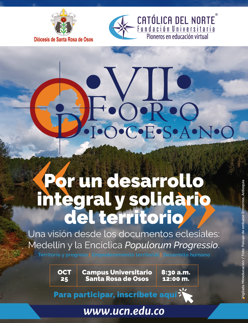 El próximo 25 de octubre, se realizará en el Campus de Santa Rosa de Osos, el VII Foro Diocesano, el cual tiene como objetivo ofrecer un espacio de encuentro, reflexión y diálogo sobre el desarrollo integral y solidario del territorio a la luz de los 51 años de la Encíclica Populorum Progressio, para contribuir al fortalecimiento de la realidad Diocesana desde lo pastoral y el compromiso social.